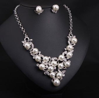 Set Bijuterii Mireasa Colier Si Cercei Placate Cu Perle Si