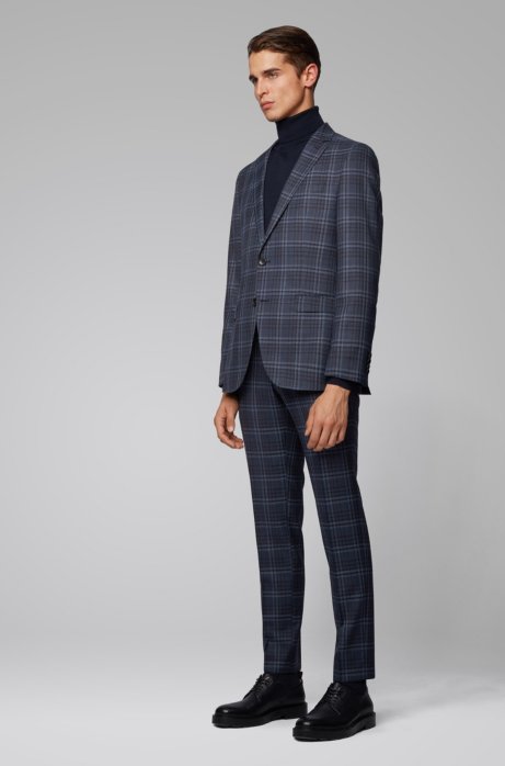 Boss Costume Slim Fit En Laine Vierge A Carreaux