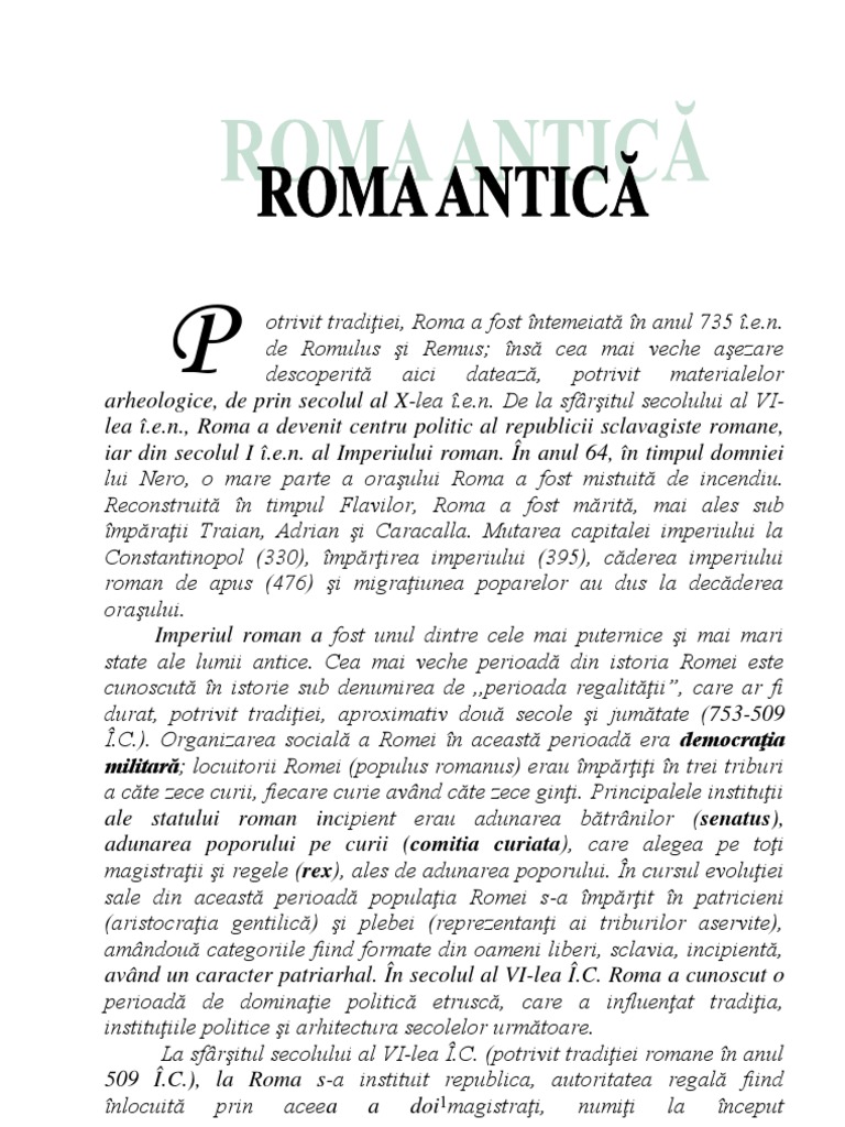 Referat Roma Antica Istorie Universala 311084 Regielive